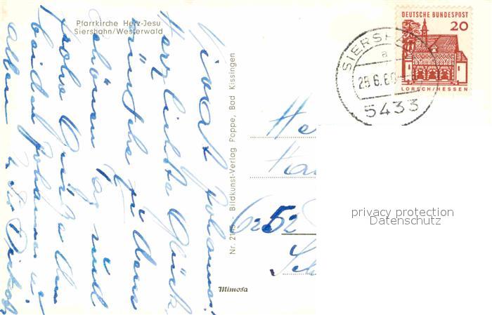 72856138 alte Postkarte Siershahn Pfarrkirche Herz-Jesu postalisch gelaufen Erhaltung siehe scans [NatalD47] KatCode: 11110007143070