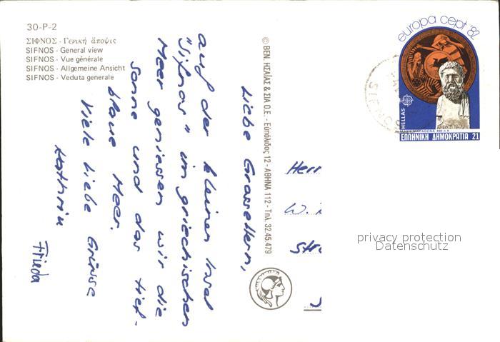 old postcard Sifnos postalisch gelaufen Erhaltung siehe scans