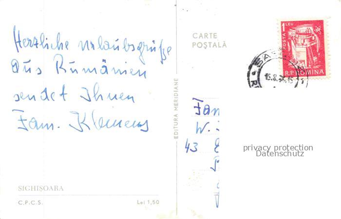 74016775 old postcard Sighisoara Schaessburg Romania Panorama postalisch gelaufen Erhaltung siehe scans [FriedD77] KatCode: 11430