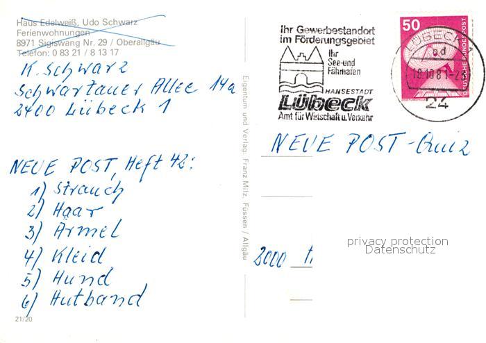 72961196 alte Postkarte Sigiswang Haus Edelweiss postalisch gelaufen Erhaltung siehe scans [WerneD78] KatCode: 11110009780134