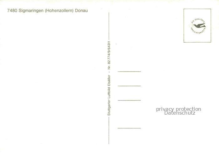 74038022 Sigmaringen BW Fliegeraufnahme postalisch nicht gelaufen Erhaltung siehe scans [WerneD78] KatCode: 11110008437104