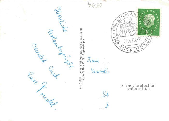 74044774 alte Postkarte Sigmaringen BW Fliegeraufnahme postalisch gelaufen Erhaltung siehe scans [WerneD78] KatCode: 11110008437104