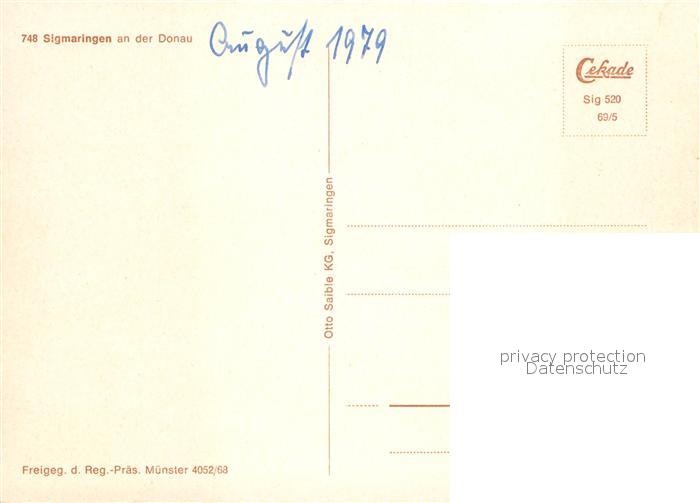 72943966 Sigmaringen Fliegeraufnahme postalisch nicht gelaufen Erhaltung siehe scans [KathaD81] KatCode: 11110008437104