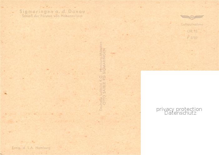 73321906 Sigmaringen Fliegeraufnahme Schloss Fuersten von Hohenzollern postalisch nicht gelaufen Erhaltung siehe scans [KathaD81] KatCode: 11110008437104