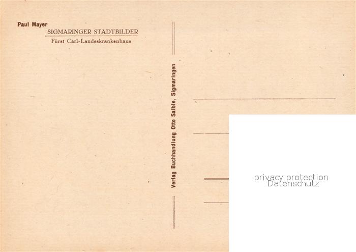 33583917 Sigmaringen Fuerst Carl Landeskrankenhaus aus der Vogelperspektive Paul Mayer Kuenstlerkarte Serie Sigmaringer Stadtbilder postalisch nicht gelaufen Erhaltung siehe scans [FriedD77] KatCode: 11110008437104