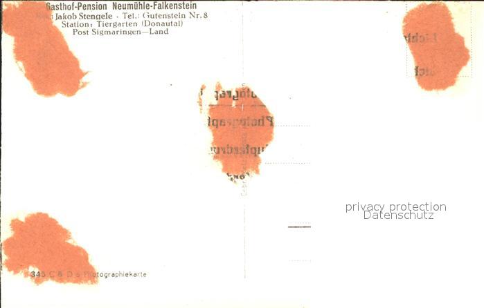 41767854 Sigmaringen Gasthof-Pension Neumuehle-Falkenstein postalisch nicht gelaufen Erhaltung siehe scans KatCode: 11110008437104
