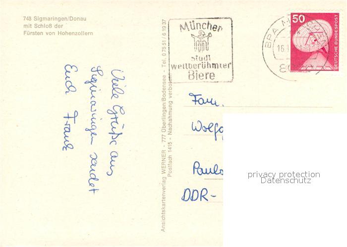 73617594 alte Postkarte Sigmaringen mit Schloss der Fuersten von Hohenzollern und Schwimmbad postalisch gelaufen Erhaltung siehe scans [WerneD78] KatCode: 11110008437104