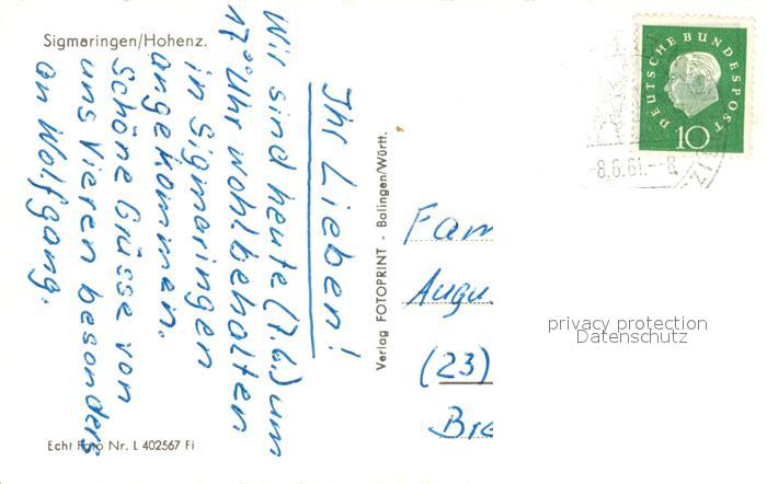 73331294 alte Postkarte Sigmaringen Schloss postalisch gelaufen Erhaltung siehe scans [WerneD78] KatCode: 11110008437104