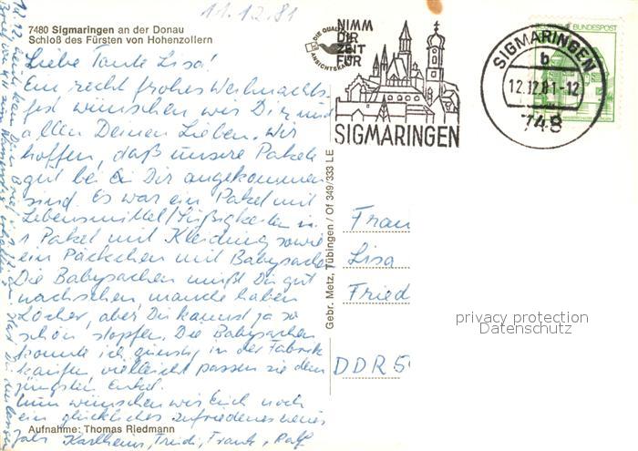 73071173 alte Postkarte Sigmaringen Schloss des Fuersten von Hohenzollern postalisch gelaufen Erhaltung siehe scans [NatalD47] KatCode: 11110008437104