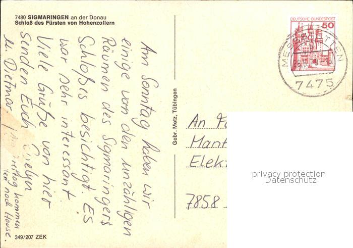 72577087 alte Postkarte Sigmaringen Schloss Fuerst von Hohenzollern postalisch gelaufen Erhaltung siehe scans [FriedD77] KatCode: 11110008437104