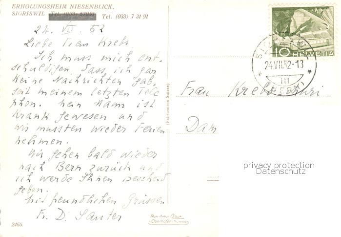 13857783 alte Postkarte Sigriswil BE Erholungsheim Niesenblick postalisch gelaufen Erhaltung siehe scans [FriedD77] KatCode: 11470060240788