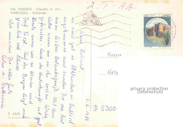 74141766 old postcard Silandro Schlanders Bolzano IT Panorama Sportplatz postalisch gelaufen Erhaltung siehe scans [WerneD78] KatCode: 11240