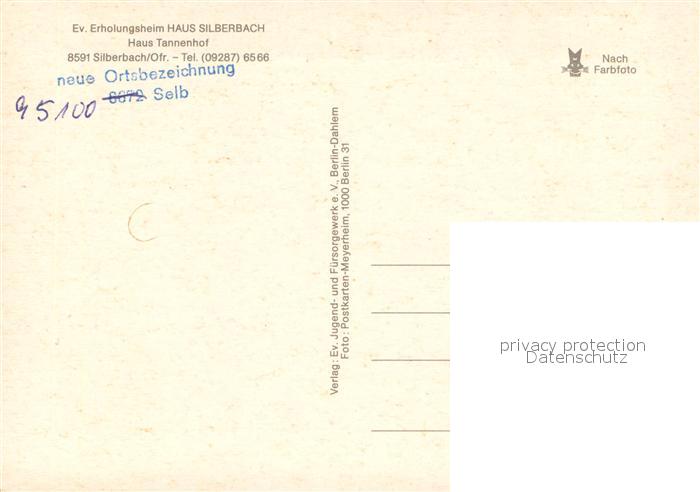 73654769 Silberbach Eger Erholungsheim Haus Silberbach im Fichtelgebirge Haus Tannenhof postalisch nicht gelaufen Erhaltung siehe scans [FriedD77] KatCode: 11110009479152