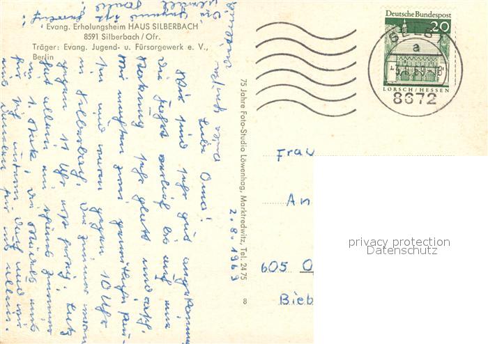 73252491 alte Postkarte Silberbach Hof Ev Erholungsheim Silberbach postalisch gelaufen Erhaltung siehe scans [WerneD78] KatCode: 11110009475142