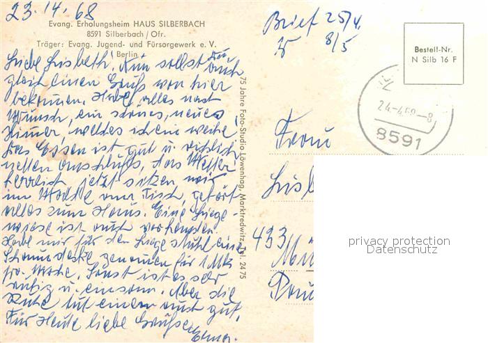 72842493 alte Postkarte Silberbach Hof Evangelisches Erholungsheim Haus Silberbach postalisch gelaufen Erhaltung siehe scans [PaolaD17] KatCode: 11110009475142