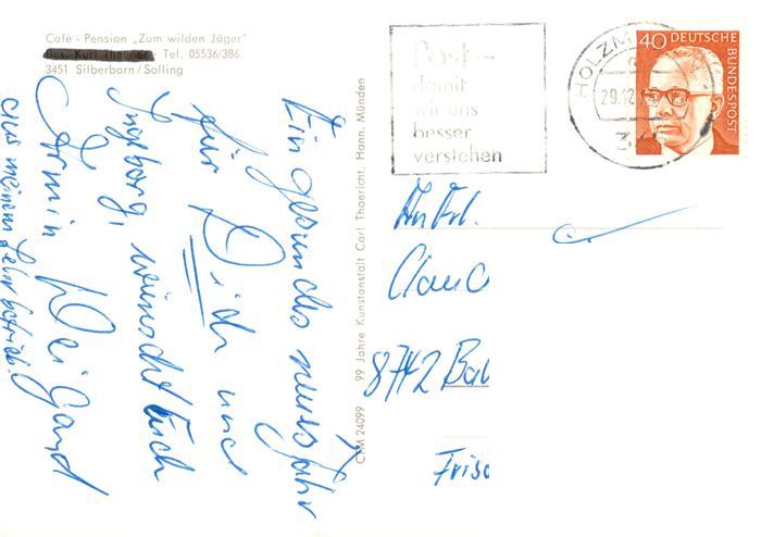 73896643 alte Postkarte Silberborn Holzminden Cafe Pension Zum wilden Jaeger Gastraeume Angelsteg postalisch gelaufen Erhaltung siehe scans [WerneD78] KatCode: 11110003255023