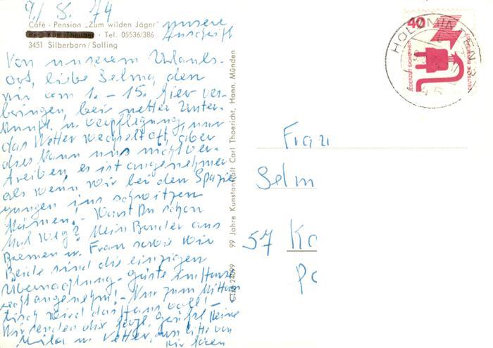 73944032 alte Postkarte Silberborn Holzminden Solling Café Pension Zum wilden Jaeger Weiher postalisch gelaufen Erhaltung siehe scans [FriedD77] KatCode: 11110003255023