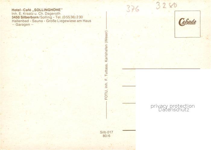 73031431 Silberborn Hotel Cafe Sollinghoehe postalisch nicht gelaufen Erhaltung siehe scans [KathaD81] KatCode: 11110003255023