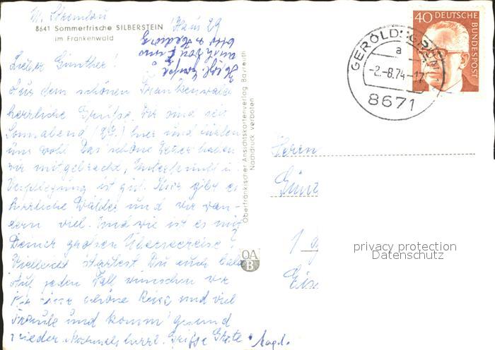 72120162 alte Postkarte Silberstein Geroldsgruen im Frankenwald postalisch gelaufen Erhaltung siehe scans KatCode: 11110009475128