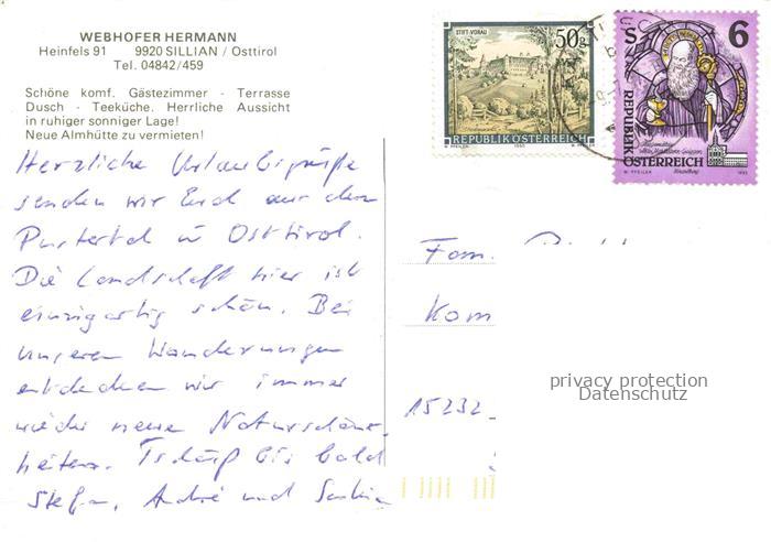 74043924 alte Postkarte Sillian Tirol AT Haus Webhofer Hermann Panorama Schloss postalisch gelaufen Erhaltung siehe scans [WerneD78] KatCode: 11390333070728