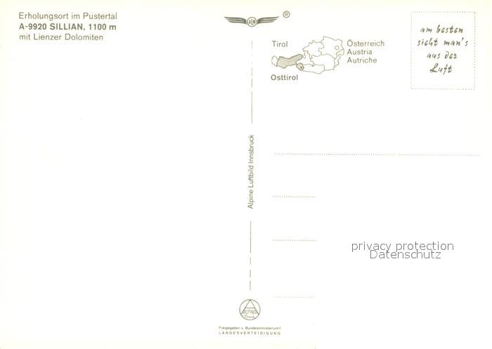 73076106 Sillian Tirol Fliegeraufnahme Pustertal postalisch nicht gelaufen Erhaltung siehe scans [KathaD81] KatCode: 11390333070728