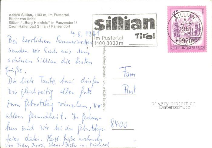 72264743 alte Postkarte Sillian Tirol mit Burg Heinfels Panzendorf Halllenbad postalisch gelaufen Erhaltung siehe scans KatCode: 11390333070728