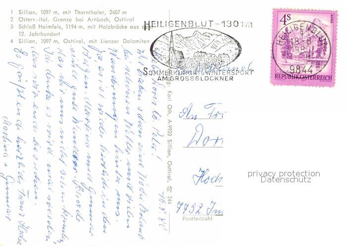 72767970 alte Postkarte Sillian Tirol mit Thurnthaler Grenze bei Arnbach Schloss Heimfels Holzbruecke Lienzer Dolomiten postalisch gelaufen Erhaltung siehe scans [WerneD78] KatCode: 11390333070728