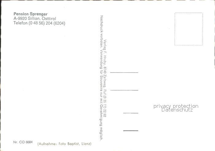 72277461 Sillian Tirol Pension Sprenger postalisch nicht gelaufen Erhaltung siehe scans KatCode: 11390333070728