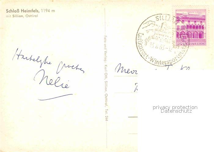 72894160 alte Postkarte Sillian Tirol Schloss Heimfels postalisch gelaufen Erhaltung siehe scans [WerneD78] KatCode: 11390333070728