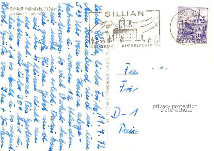 73592122 alte Postkarte Sillian Tirol Schloss Heimfels postalisch gelaufen Erhaltung siehe scans [WerneD78] KatCode: 11390333070728