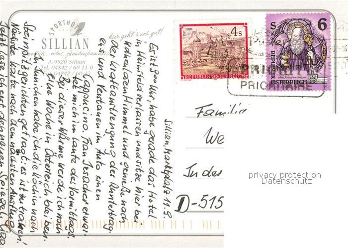 72942995 alte Postkarte Sillian Tirol Sporthotel postalisch gelaufen Erhaltung siehe scans [KathaD81] KatCode: 11390333070728