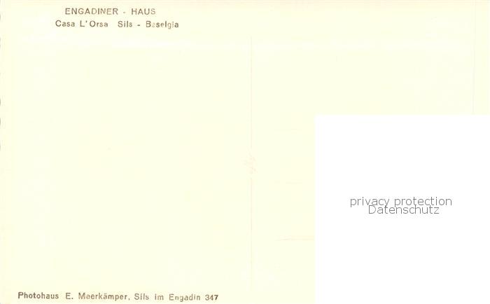 13802002 Sils Baselgia GR Engadiner Haus Casa l Orsa postalisch nicht gelaufen Erhaltung siehe scans [FriedD77] KatCode: 11470100335232