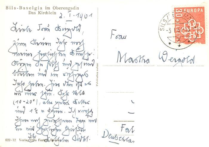 13915126 alte Postkarte Sils Baselgia GR Kirchlein postalisch gelaufen Erhaltung siehe scans [WerneD78] KatCode: 11470100335232