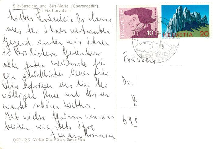 13908772 alte Postkarte Sils Baselgia GR mit Piz Corvatsch postalisch gelaufen Erhaltung siehe scans [FriedD77] KatCode: 11470100335232