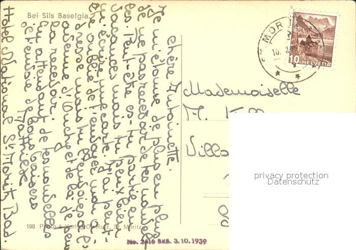 11837229 alte Postkarte Sils Baselgia Ort Kirche postalisch gelaufen Erhaltung siehe scans KatCode: 11470100335232