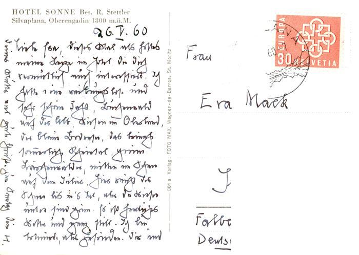 13904902 alte Postkarte Silvaplana GR Hotel Sonne Gastraum postalisch gelaufen Erhaltung siehe scans [WerneD78] KatCode: 11470100335236