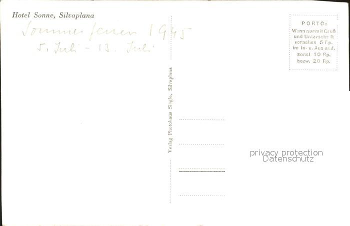12029889 Silvaplana GR Hotel Sonne postalisch nicht gelaufen Erhaltung siehe scans KatCode: 11470100335236