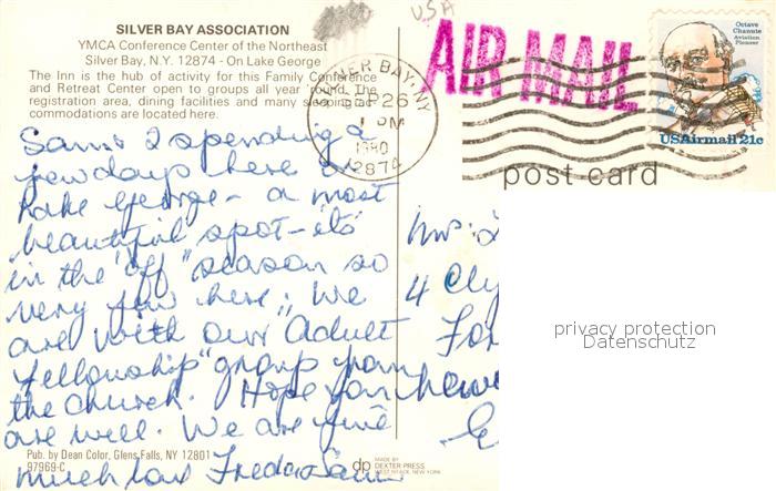 73123653 old postcard Silver Bay New York YMCA Conference Center postalisch gelaufen Erhaltung siehe scans [FriedD77] KatCode: 14140340000000