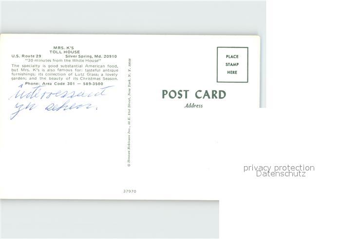 72109370 Silver Spring Maryland Toll House postalisch nicht gelaufen Erhaltung siehe scans KatCode: 14140220000000