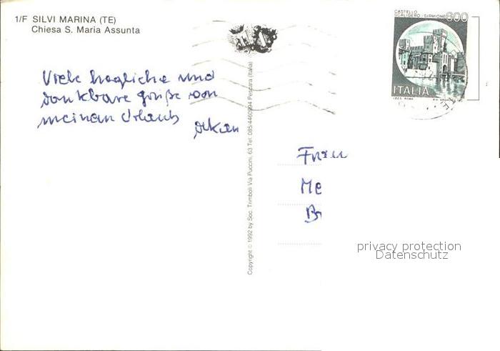 old postcard Silvi Marina Chiesa San Maria Assunta postalisch gelaufen Erhaltung siehe scans