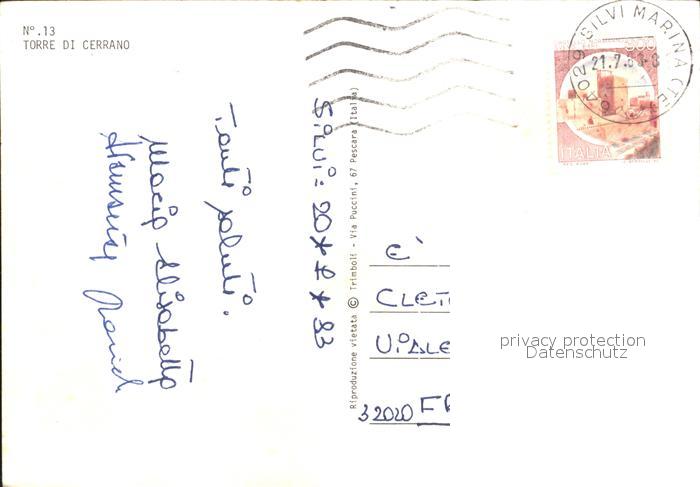 old postcard Silvi Marina Torre di Cerrano postalisch gelaufen Erhaltung siehe scans