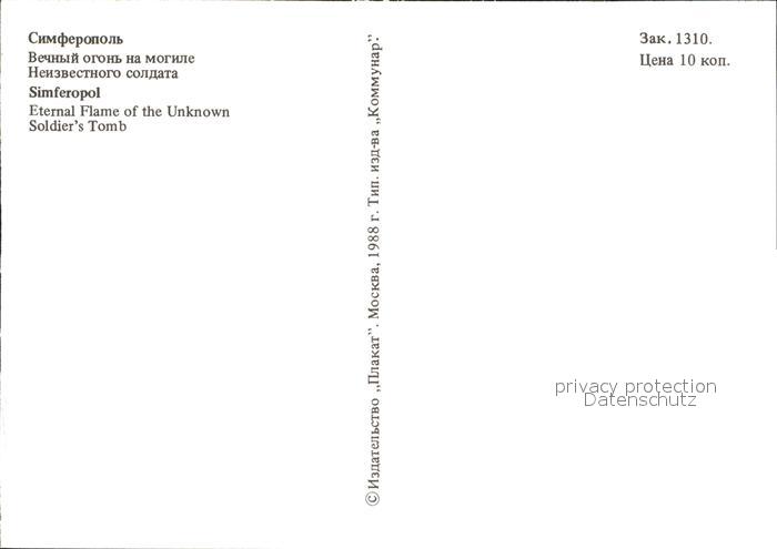 Simferopol Krim Crimea Eternal Flame of the Unknown Soldiers Tomb postalisch nicht gelaufen Erhaltung siehe scans [NatalD47]