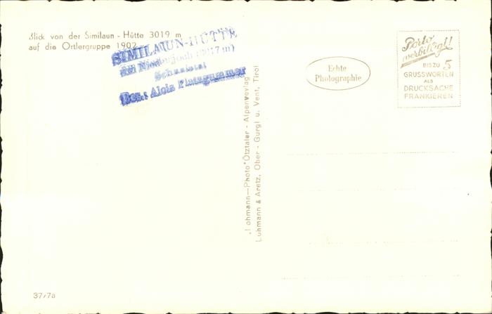 Similaunhuette Ortlergruppe postalisch nicht gelaufen