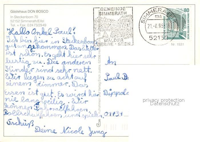 73642058 alte Postkarte Simmerath Gaestehaus Don Bosco postalisch gelaufen Erhaltung siehe scans [WerneD78] KatCode: 11110005354028