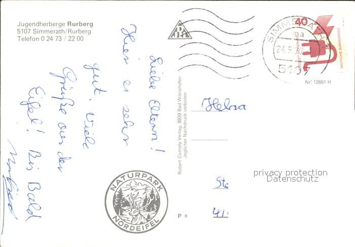 72113370 alte Postkarte Simmerath Jugendherberge Rurberg postalisch gelaufen Erhaltung siehe scans KatCode: 11110005354028