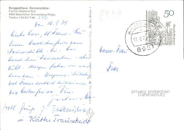 72421219 alte Postkarte Simmerberg Berggasthaus Sonnenstueble postalisch gelaufen Erhaltung siehe scans KatCode: 11110009776129