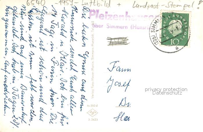 73754265 alte Postkarte Simmern Hunsrueck Fliegeraufnahme postalisch gelaufen Erhaltung siehe scans [LiesaD40] KatCode: 11110007140144