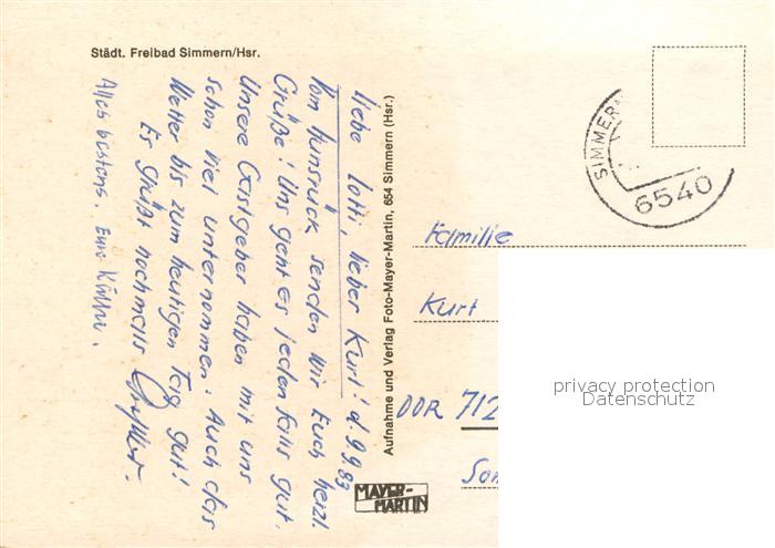 73671856 alte Postkarte Simmern Hunsrueck Freibad postalisch gelaufen Erhaltung siehe scans [WerneD78] KatCode: 11110007140144