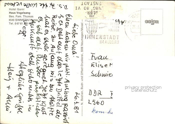 72420763 alte Postkarte Simmern Hunsrueck Haus Vogelsang postalisch gelaufen Erhaltung siehe scans KatCode: 11110007140144