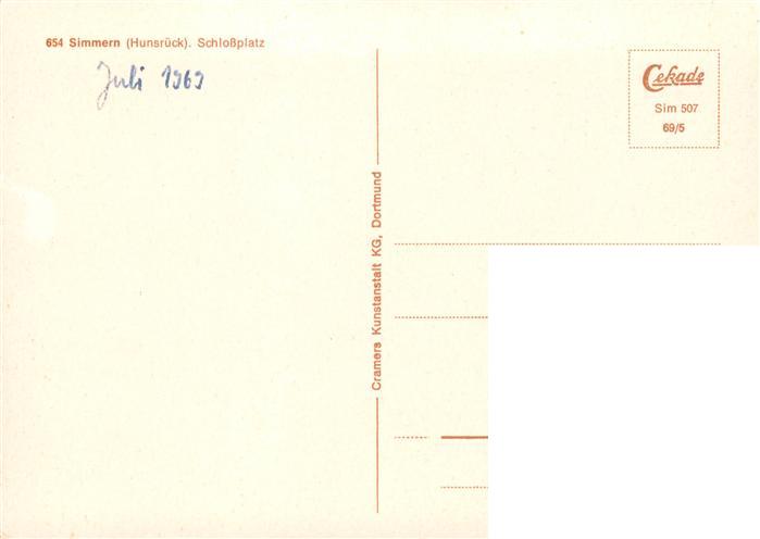 73895253 Simmern Hunsrueck Schlossplatz postalisch nicht gelaufen Erhaltung siehe scans [WerneD78] KatCode: 11110007140144